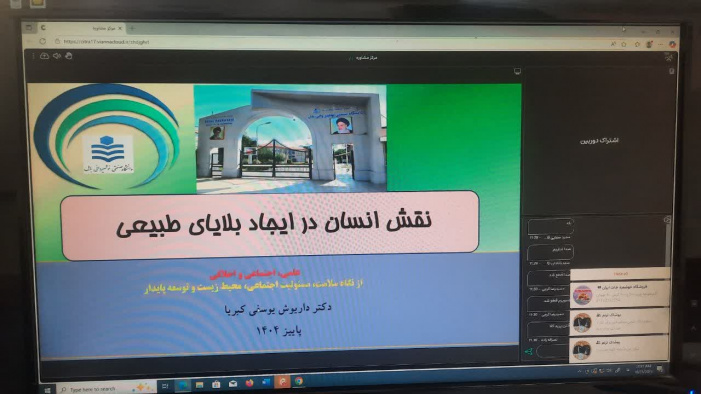 این وبینار با هدف افزایش آگاهی مخاطبین دربارهی نقش فعالیتهای انسانی در شدت، فراوانی و پیامدهای بلایای طبیعی و ارائه راهکارهای سیاستی و آموزشی برای کاهش اثرات آنها بر سلامت و محیط زیست برگزار شد و شرکتکنندگان از سراسر ایران در این گفتوگو و تحلیل میانبخشی بهصورت آنلاین در آن حضور داشتند .